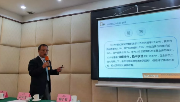 韓總發(fā)言主要包括三個(gè)模塊的內(nèi)容:一,首先總結(jié)了2019年各體系的工作;二,緊接著明確提出2020年公司總基調(diào)定位為“革新·進(jìn)取”,對(duì)2020年市場(chǎng)環(huán)境作出判斷,提出了總的工作方針、各體系的重點(diǎn)工作以及RT預(yù)算目標(biāo);三,最后給大家深入講述了企業(yè)文化,要求全體美鵬人肩負(fù)“共創(chuàng)美好家國(guó)”的使命,牢記公司的核心價(jià)值“客戶第一、誠(chéng)信為本、質(zhì)樸奮斗、崇尚做到”,秉承公司“熱情、認(rèn)真、專業(yè)、高效”的工作作風(fēng),按美鵬工作三要求辦事“用心做事,達(dá)成目標(biāo);按規(guī)定做事,服從領(lǐng)導(dǎo);同事間不計(jì)較,溝通、包容、支持”,共同努力實(shí)現(xiàn)“致力成為華南地區(qū)最優(yōu)秀的工程設(shè)備及工程設(shè)備使用方案的提供商”的愿景!
